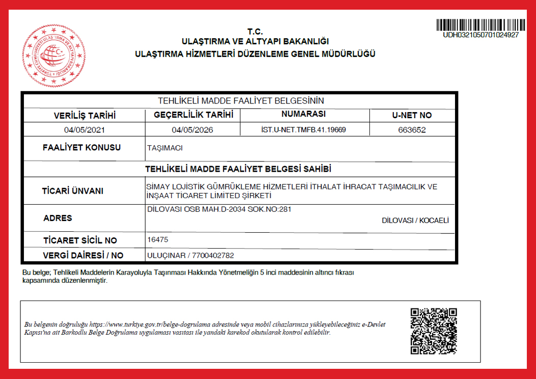 TEHLİKELİ MADDE TAŞIMA